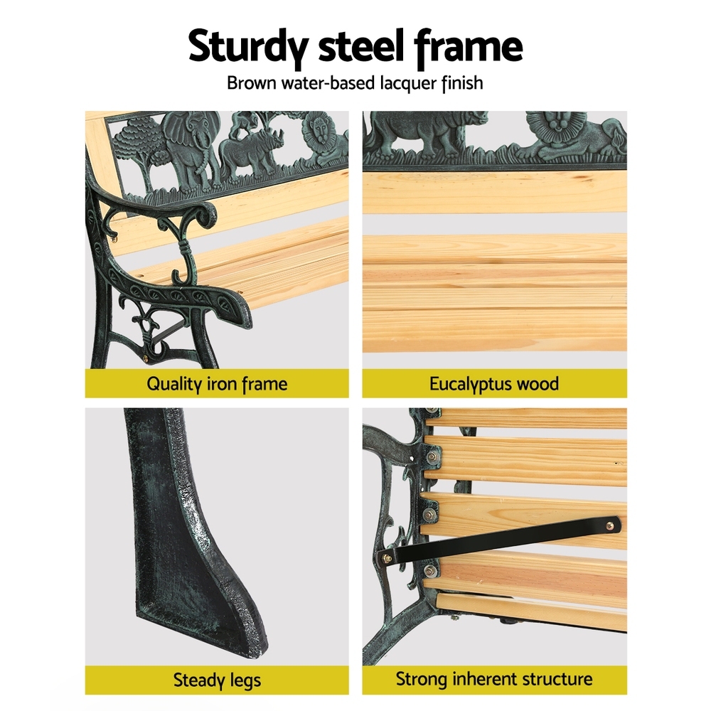 Sold OutWant to create a beautiful outdoor space? Decorate and bring your outdoors to life with our gorgeously designed Gardeon kids garden benches. Add flower beds and some good lighting to create a dreamy outdoor ambience. Our outdoor garden bench is designed to impress. Featuring beautiful animal pattern with meticulous details, this kids garden bench is crafted from sturdy and durable iron frame with eucalyptus wood seat and has a strong inherent structure for ultimate durability and longlasting use. It can hold up to 150kg and comes with brown water-based lacquer paint for neat and well-finished look. Flaunting gorgeous back design, our garden bench has well-ventilated back that keeps you cool and sweat-free as you enjoy your great outdoors. It has strong fixings with steady legs for superb stability and steadiness. Furthermore, it has armrests to keep you comfortable, and the polished edges offers convenient and comfortable sitting. You can style this kids garden bench both indoors and outdoors, giving you the flexibility to choose what best suits your space. Shop our Gorgeously built Gardeon outdoor kids garden bench today to refresh your outdoors.