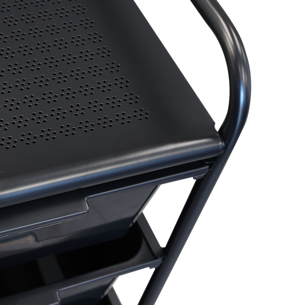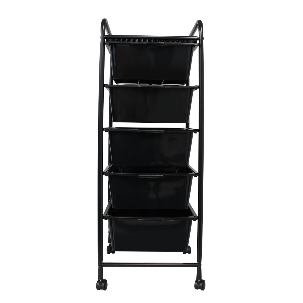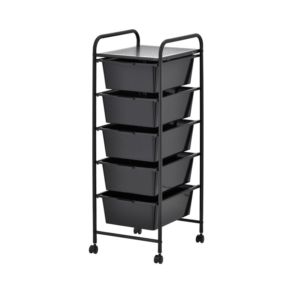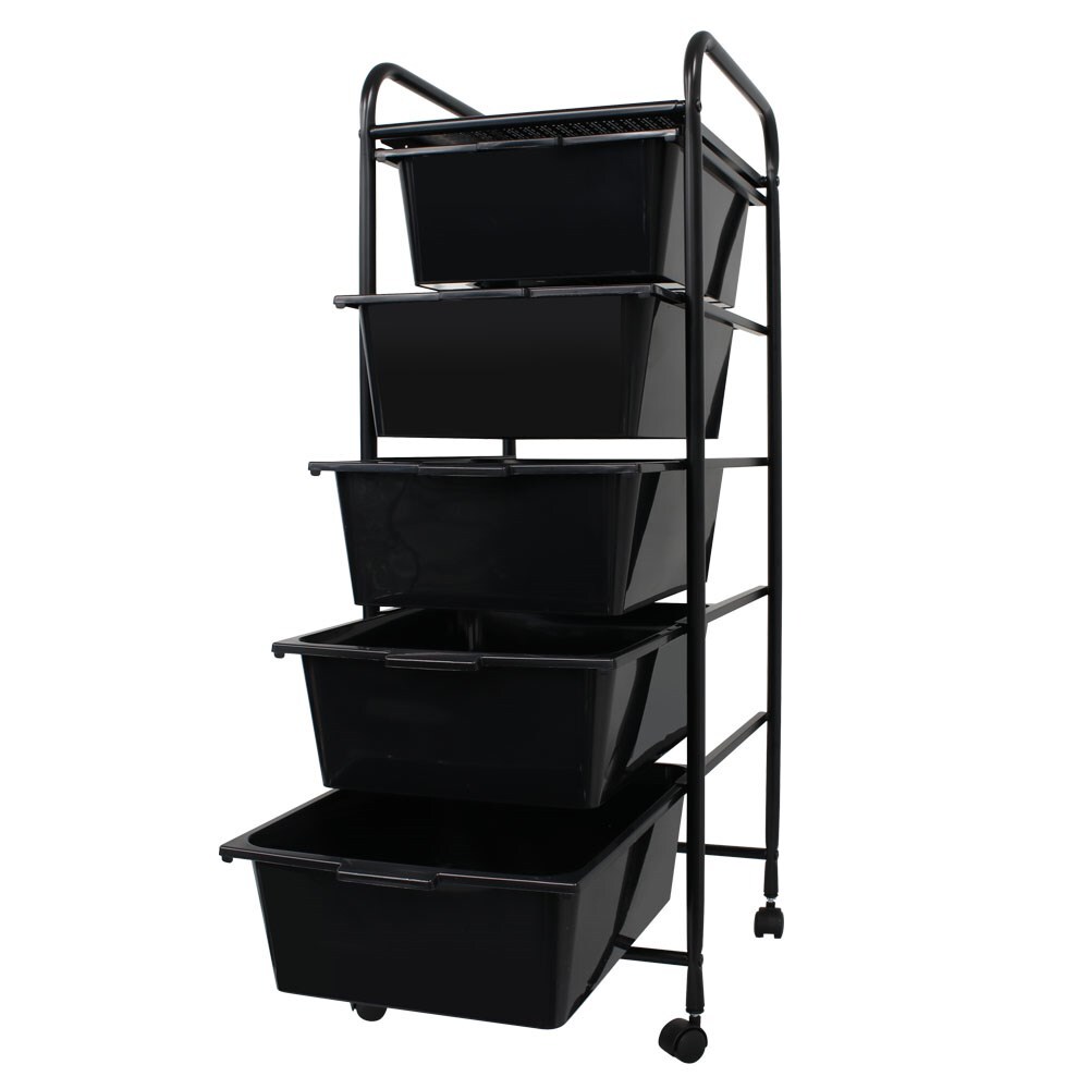 Black Plastic Storage 5 Drawer with Metal Trolley Shelf and Slide-Out Drawers