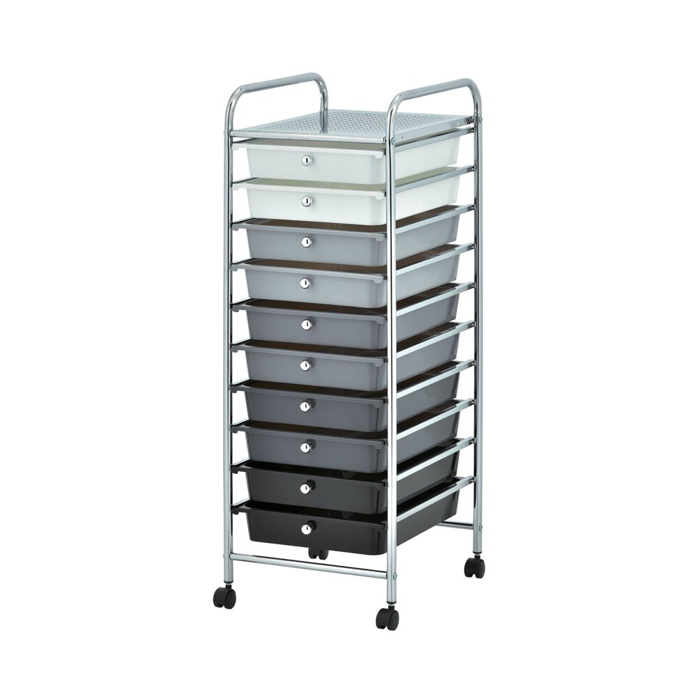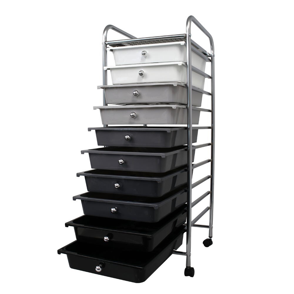 Plastic Storage10 Tier with Metal Trolley Shelf and Slide-Out Drawers