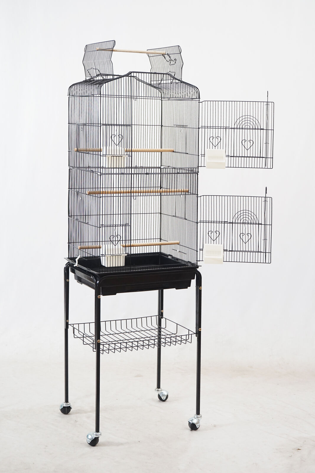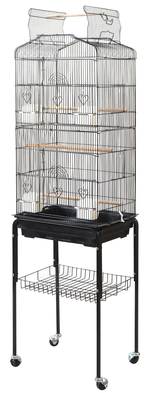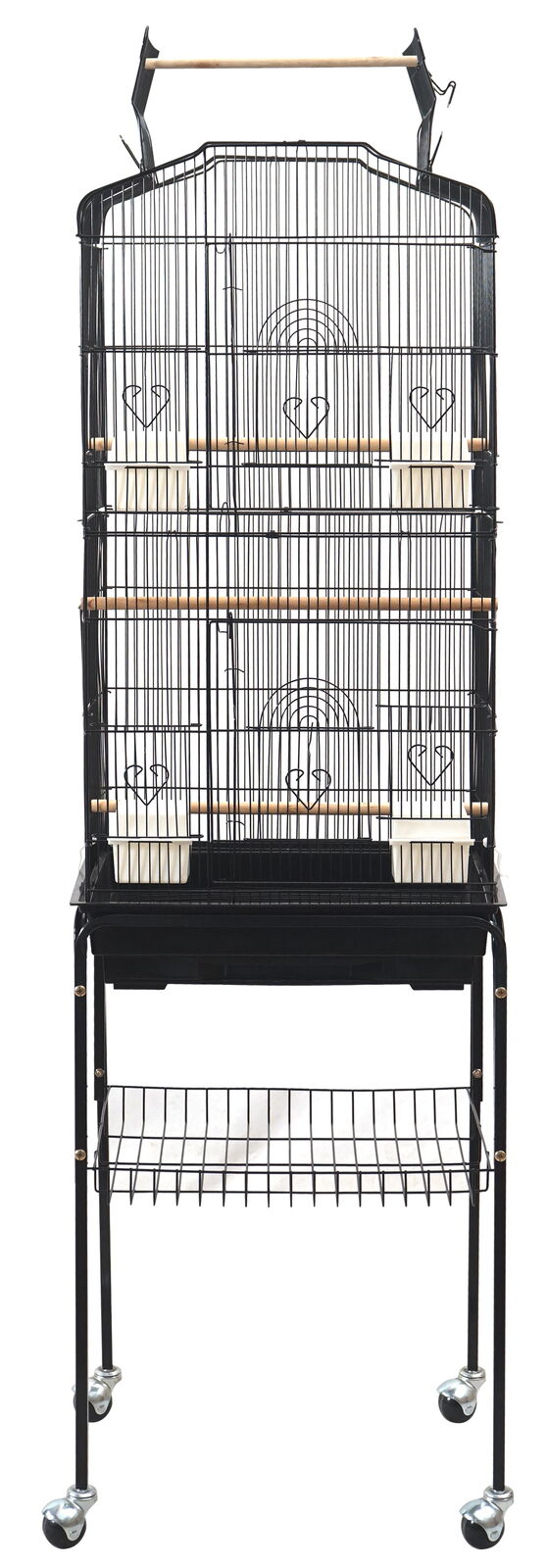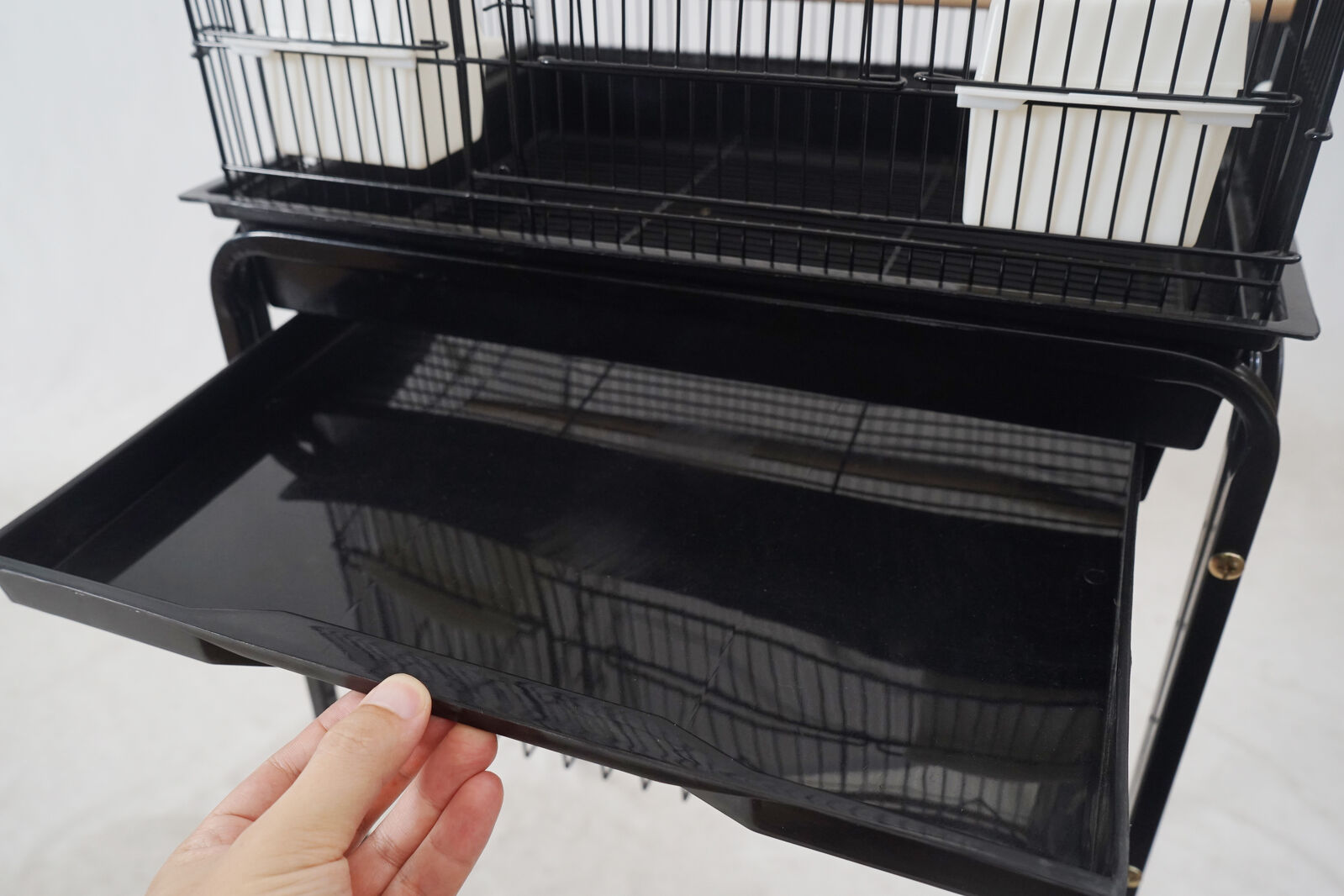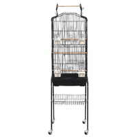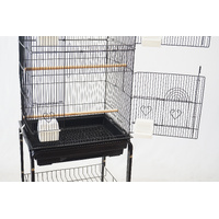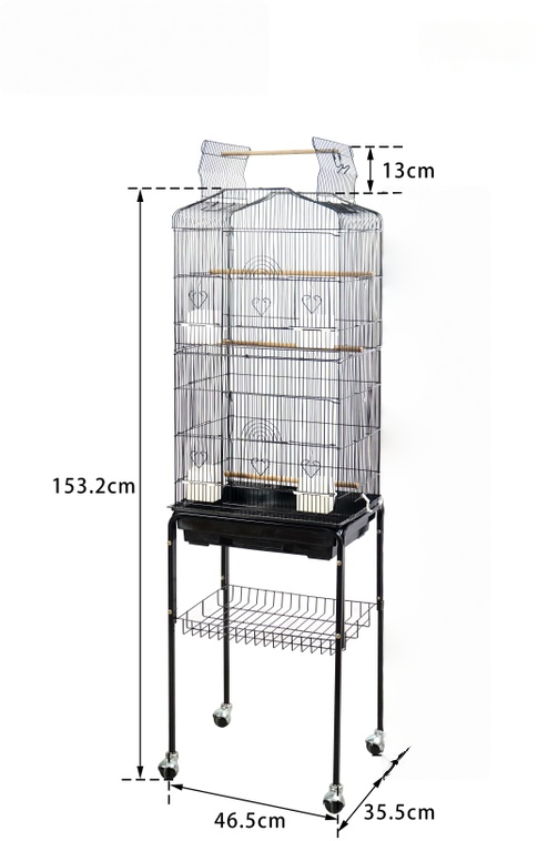 This Parrot Cage with an opening dome roof is the most comfortable roost for your bird. The cage is made of sturdy and high-quality metal. It is tough and durable. The dimension of this cage is about 47 x 36 x 153 cm, which is perfect for small to medium-sized birds as well as parrots. The cage comes with multiple access doors, food and water trays, 3 timber perches and a removable tray. There are 4 castor wheels equipped on the elegant stand which provides great mobility. There is also a wire shelf below the cage for extra storage.