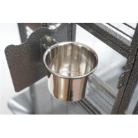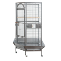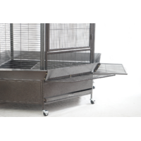 Create the perfect roosting space for your bird with this extra large corner bird cage Built from durable wrought iron and finished with a non toxic powder coat this aviary is safe secure and built to last With a large access door side openings for food and water trays slide out cleaning trays and lockable wheels this cage is ideal for parrots cockatiels budgies and other small to medium birds