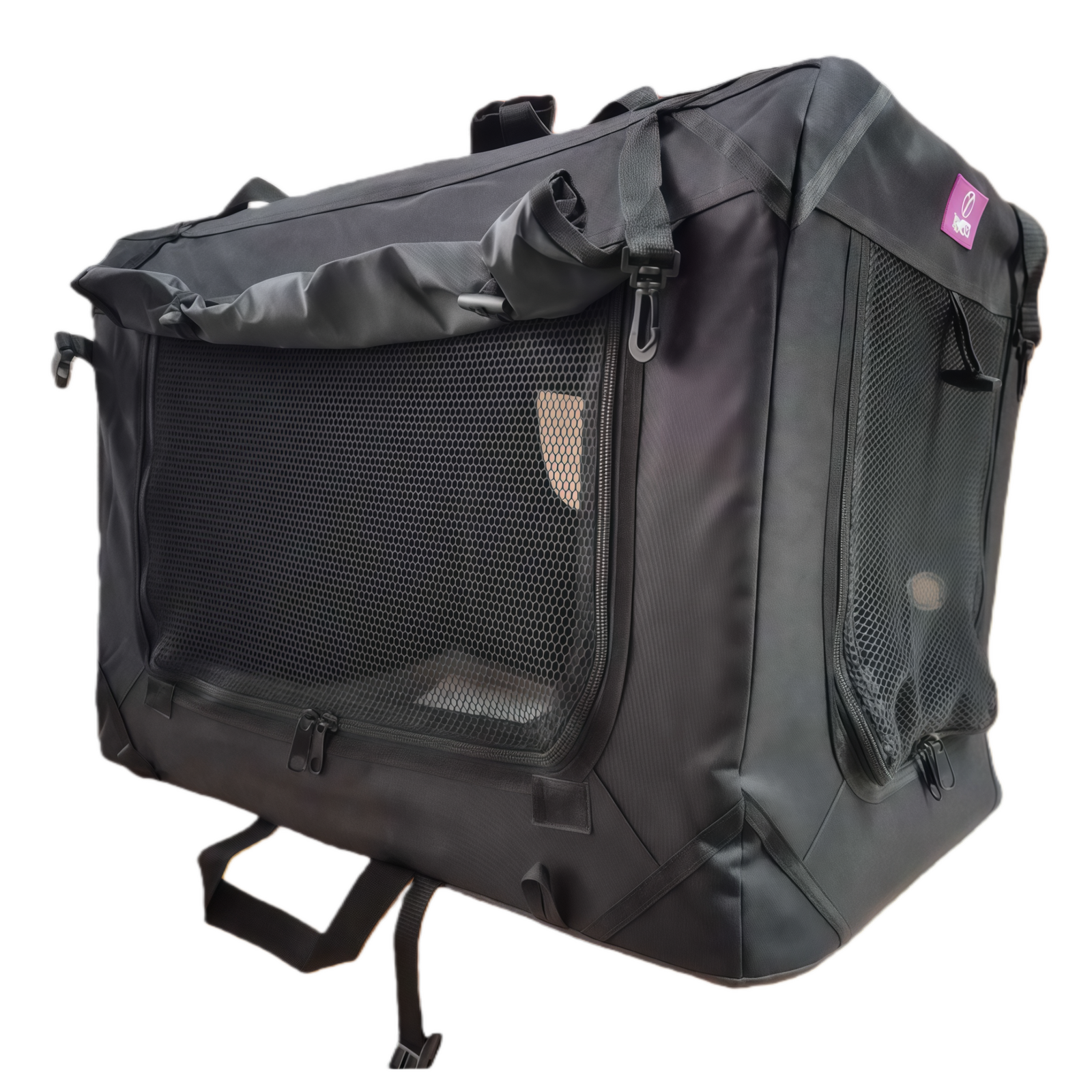 Designed for easy transport, the crate comes with sturdy top carry straps and folds flat when not in use. Snap clips on both sides keep everything secure during travel.