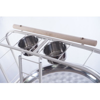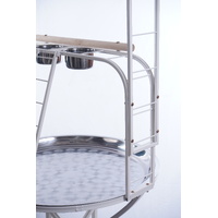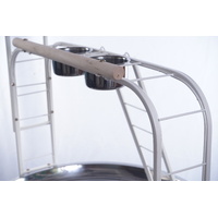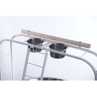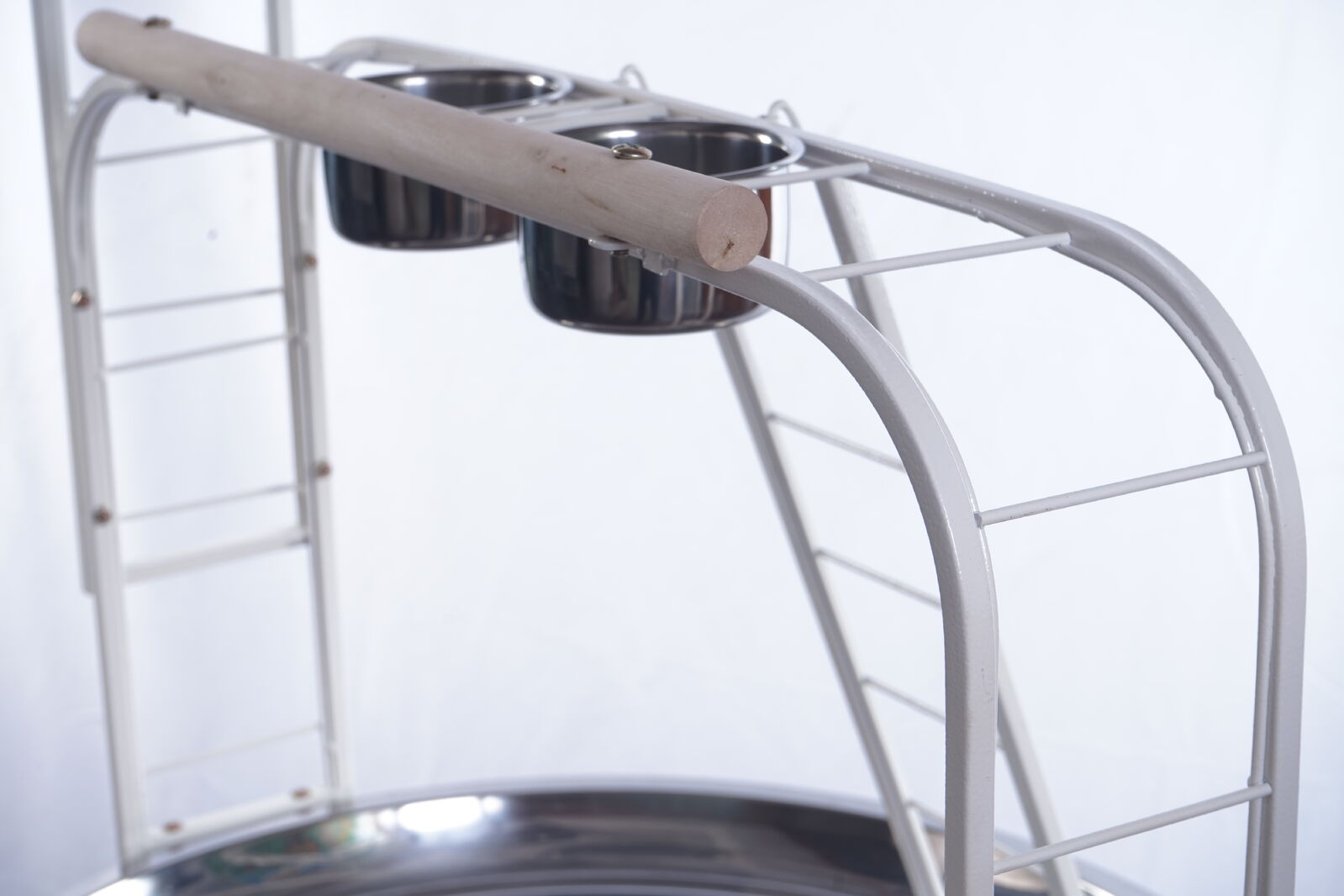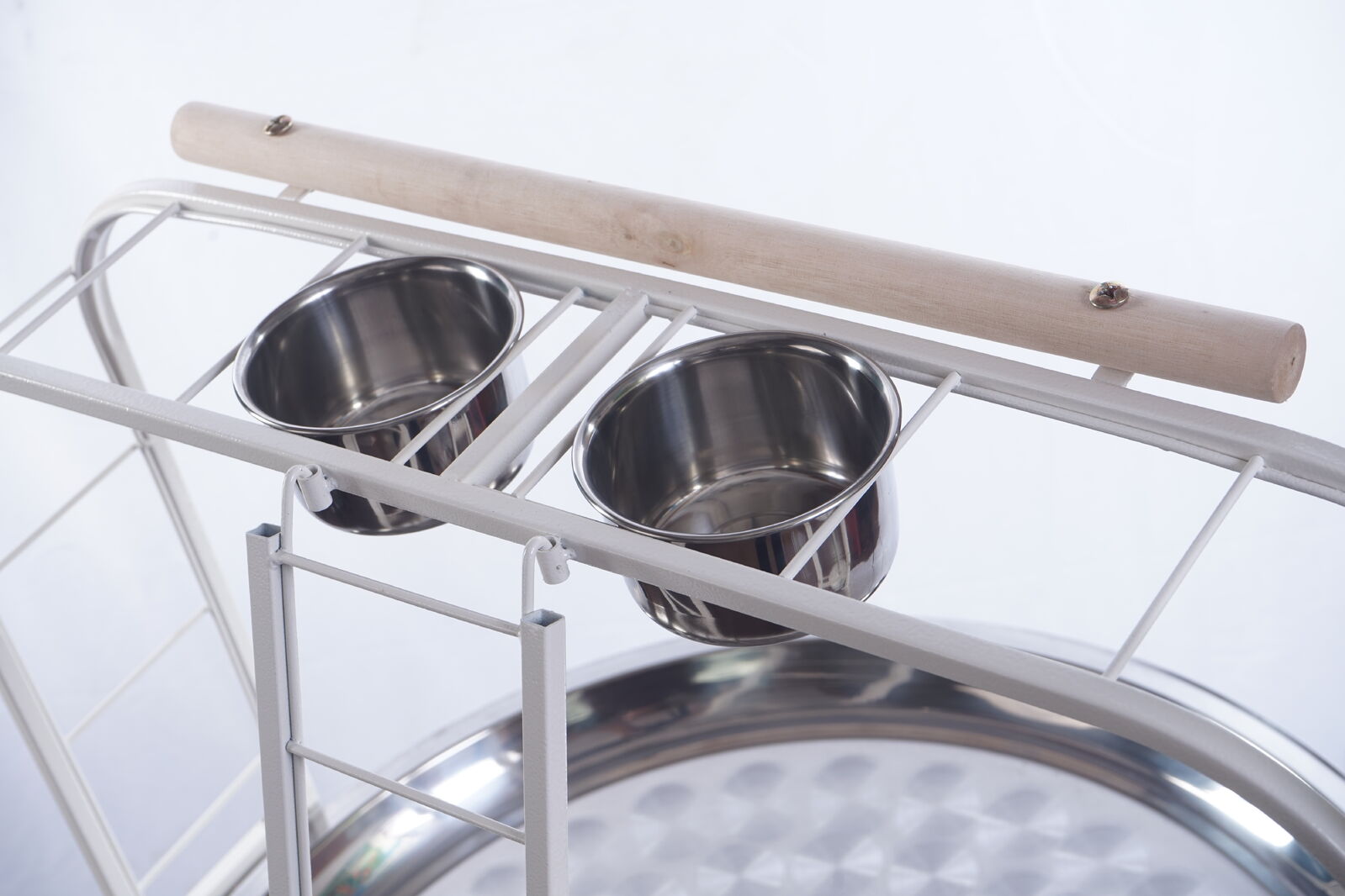 Featuring long neck ladders, a wooden perch, two stainless steel feeder cups, and a toy hook, it provides endless enrichment opportunities. The large seed tray helps contain mess, while four smooth-rolling casters make it easy to move around your home.