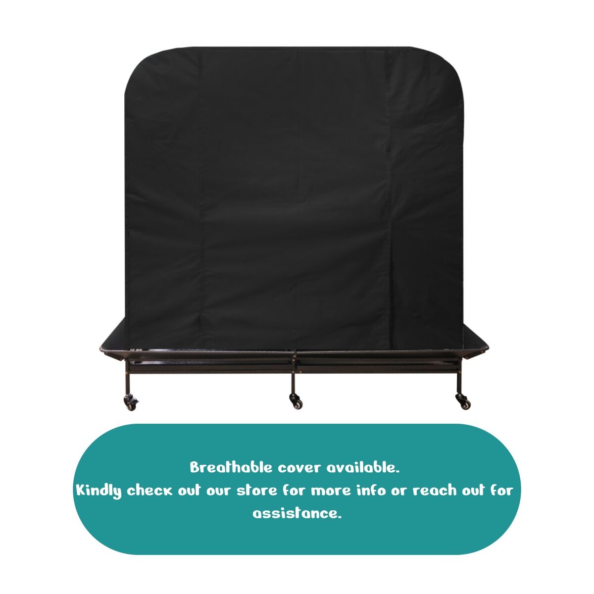 Featuring large access doors, two removable bottom trays, and secure locks, maintenance is simple and safe. Four feeding bowls and lockable castor wheels make daily care more convenient, while the elegant black and silver design adds style to any space.