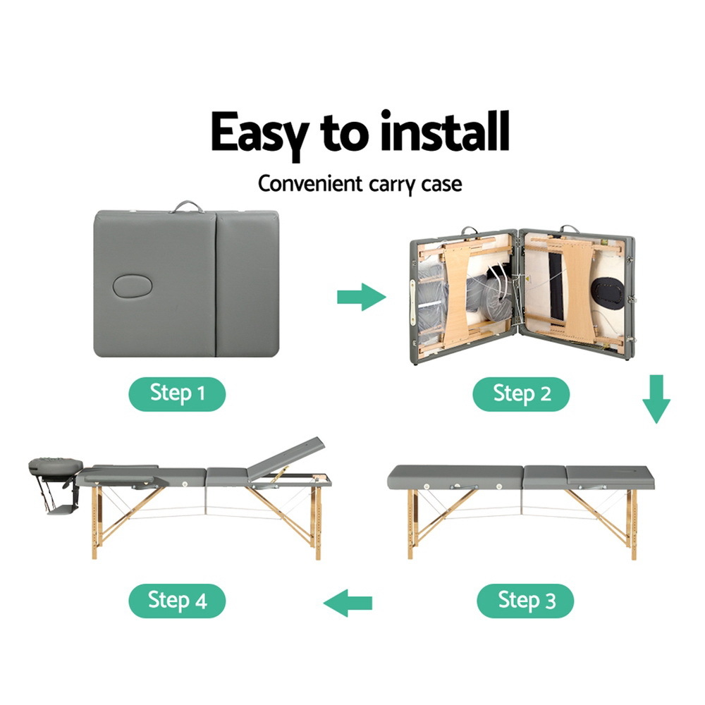 It’s big and bulky. You’re right. But you’ll be surprised how this 75cm wide massage table can be tucked away and become portable. Carry it around in rain or sunshine without having to worry about your massage table wearing off.